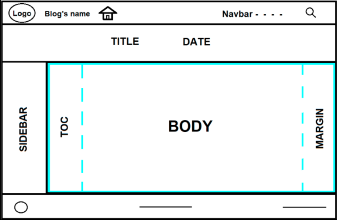 Los “artículos” tienen un body, un margin y un área para las sidebars, que en nuestro caso contiene el TOC1.